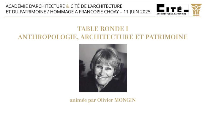 Catherine JACQUOT, Présidente de l'Académie d'Architecture et Julien BARGETON, Président de la Cité de l'Architecture et du Patrimoine ont le plaisir de vous inviter à la table ronde I organisée en hommage à Françoise CHOAY le 11 juin 2025 à 18h00 à l'Académie d'Architecture
